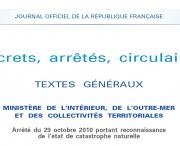 Vous trouverez ci-dessous la lettre de réponse adressée à Jean-Luc PERAT, Député, par le Minsitre de l'Intérieur de l'Outre-Mer et des Collectivités Territoriales ainsi que l'extrait du Journal Officiel de la République Française du 3 novembre portant reconnaissance de l'état de catastrophe naturelle des 17 Commune.